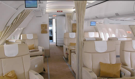 El Airbus 319 o «ACJ» fue el primer jet chárter privado VIP corporativo preparado para transportar 29 pasajeros a una distancia de 10.000 km (de Londres a Los ángeles) sin escalas. Habitualmente viene configurado con zona de sala de estar en dirección a la marcha, lo que proporciona el ambiente de trabajo perfecto, con comunicación por satélite, servicio de impresora y fax y sofás que se convierten en divanes. Hacia la parte trasera, estos aviones chárter cuentan con butacas totalmente reclinables con acabados suntuosos, con un espacio por asiento sumamente generoso y con apoyapiernas y soporte lumbar individual.